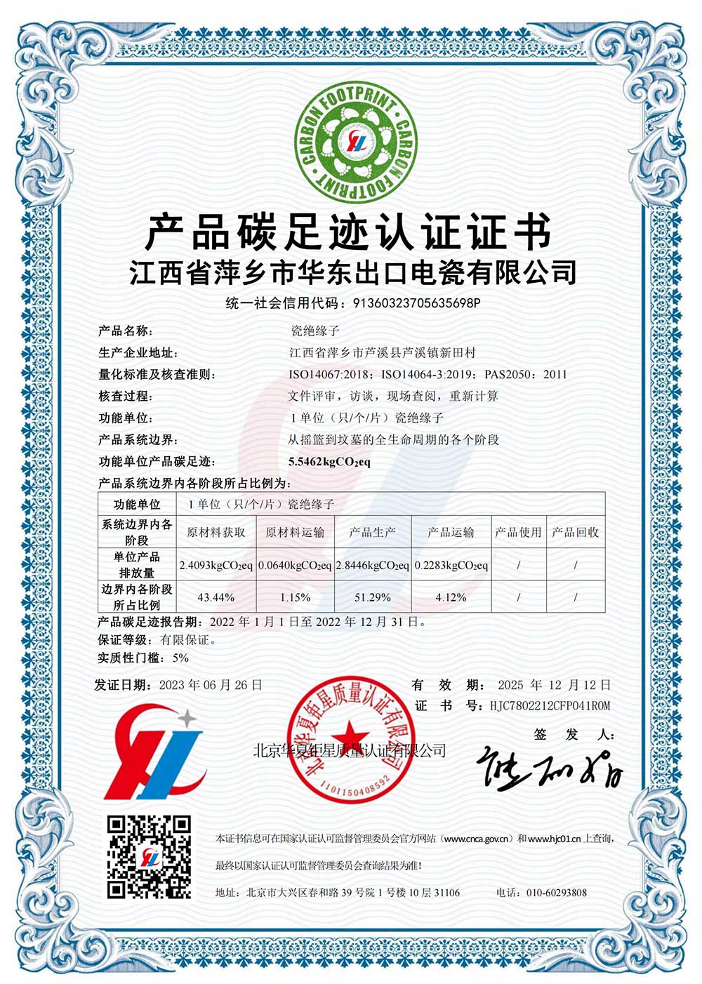 產品碳足跡認證證書